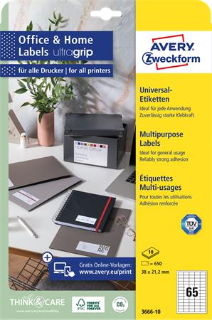 Etikett, univerzális, 38x21,2 mm, AVERY ZWECKFORM, 650 etikett/csomag