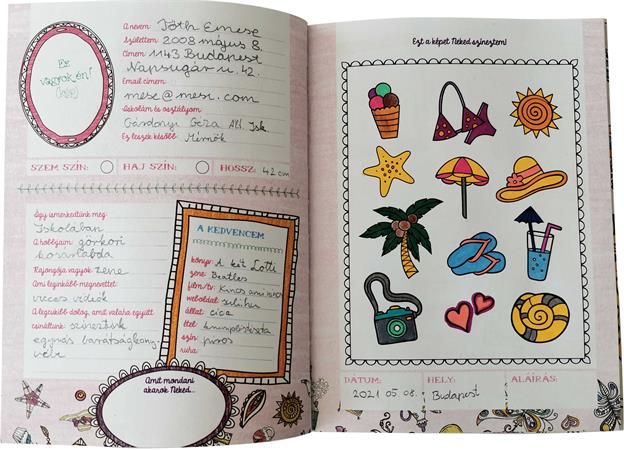 -belül az  oldalpár egyik felén az alkotó személy adatait lehet megjeleníteni, a másik oldal pedig változó színezési lehetőséget kínál